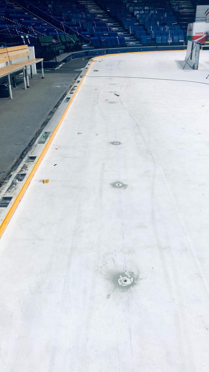 Особую угрозу представляет пробитие трубки при бурении холодильной плиты. Это может вызвать утечку хладагента и поломку всей системы охлаждения хоккейного поля.